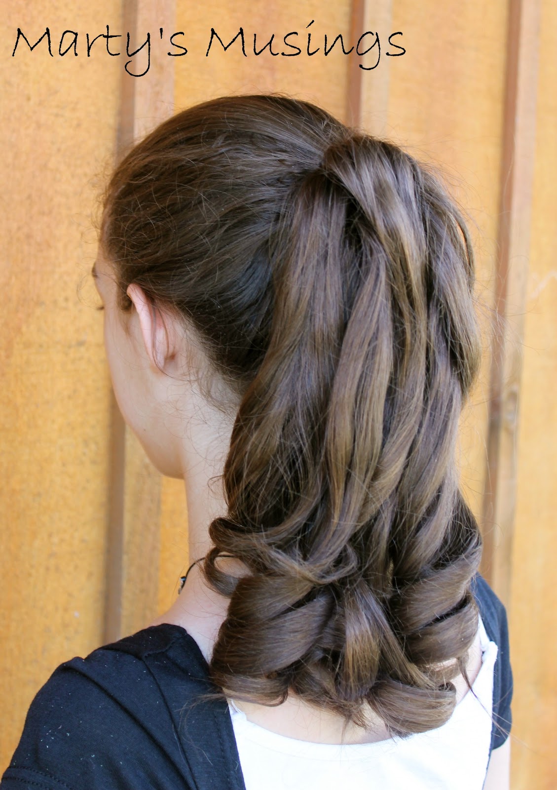 I washed my hair, dried it, and rolled it in sponge rollers and put it into a high pony tail.