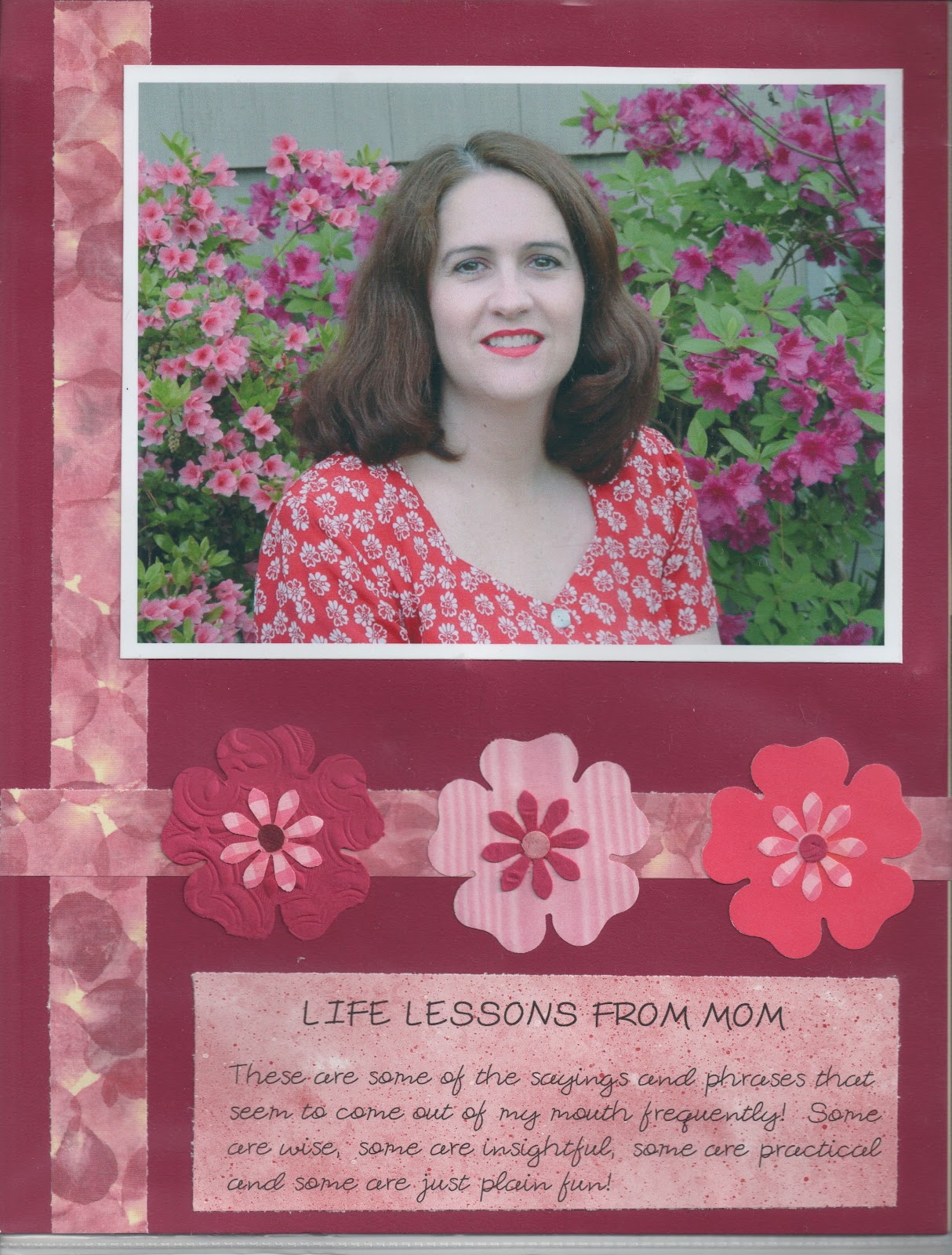 Just for general information, I started out scrapping on 8 1/2×11 pages but switched a few years ago to 12×12 and love the larger layouts. I don’t scrap chronologically much of the time but like to draw connections through the years, often pairing older pictures with more recent ones. I love to use notes, letters and memorabilia on my layouts. I have some really, REALLY bad layouts from when I started somewhere around 1996. You know, the ones all chopped up with the decorative scissors or cropped with all the good stuff (background, etc.) left out. Oh, well. I have done a Project Life album every year since 2009 and love the way it details our everyday life.